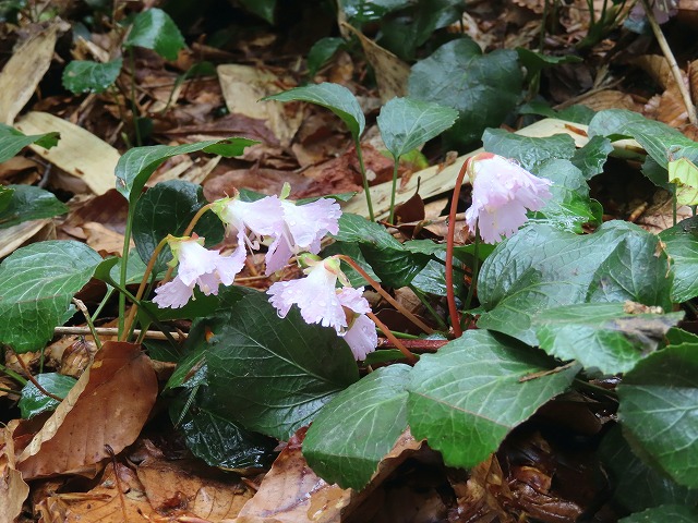 雪が溶けて地肌が現れた場所にはたくさんのイワウチワが咲いていました。