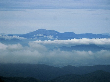 さらに左には谷川岳周辺の山々や苗場山の特徴ある平頂、草津の山々や四阿山などを眺め、浅間山を見てその左は残念ながら雲に隠れていました。