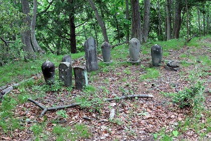 さらに進むといきなり下草がまばらになってなにやら墓石が並んでいます。その形から相当古い時代の物と想像できます。