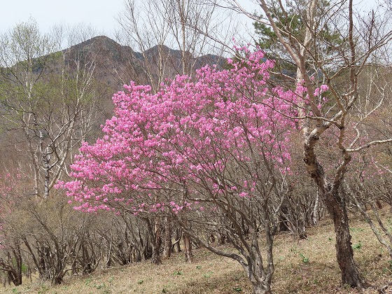 大岩の基部を回ってコメツツジの斜面の中の踏み跡を緩やかに登るといよいよアカヤシオが徐々に増えてきます。