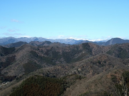小広く明るい頂上からは樹間になりますがこの先に連なるつつじ山、桜山が見えます。が、反対側に下りてしまうことになって駐車地に戻るのがたいへんそうなのでここまでとしました。