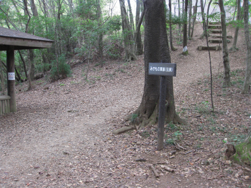 下山は冒険砦から舗装道を山頂広場まで戻り少し尾根道を通って三毳関蹟から一気に山道を下り東入口駐車場まで戻りました。 |