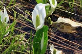 雪解けが早かったと見えてもう水浸し状態からはずいぶん日にちも経った様子でちょっと乾き気味です。清らかな水流に抗って純白の苞を立ち上げる様子は見られませんでした。