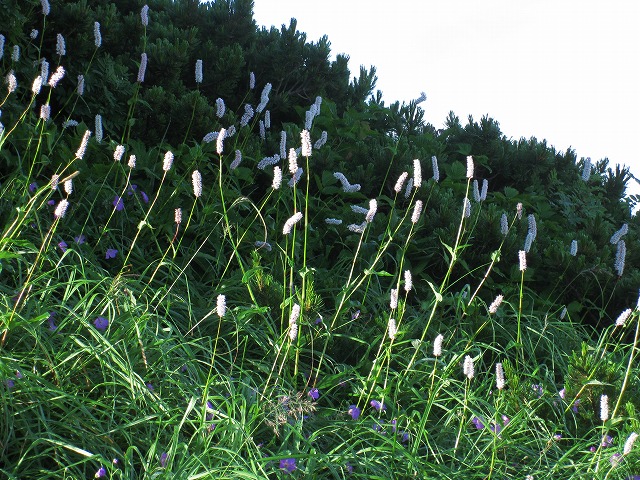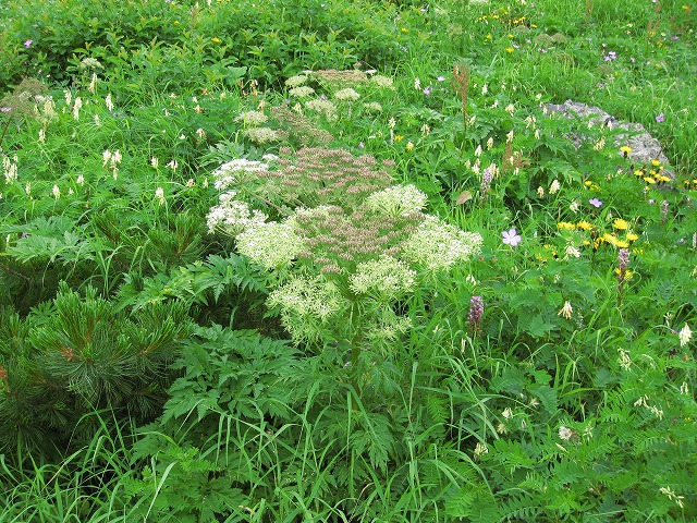 下りも花の中。途中葱平の上部のお花畑で高山植物案内をしていましたのでいろいろ教わってきました。イワオウギとタイツリオウギの区別とか、いくつかの花の漢字表記とか、なかなか楽しい案内でした。(謝謝)