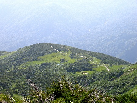 朝日岳下山(栂海新道分岐、白高地を見下ろす)